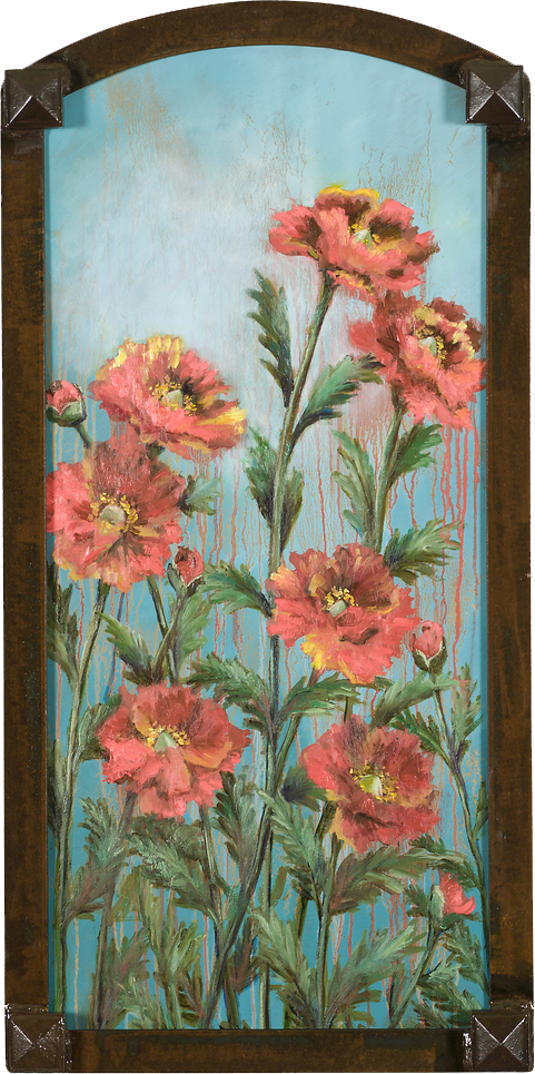 Arched Cheerful Poppies by Vic Mastis 30″x15″ – Oil and Gold Leaf